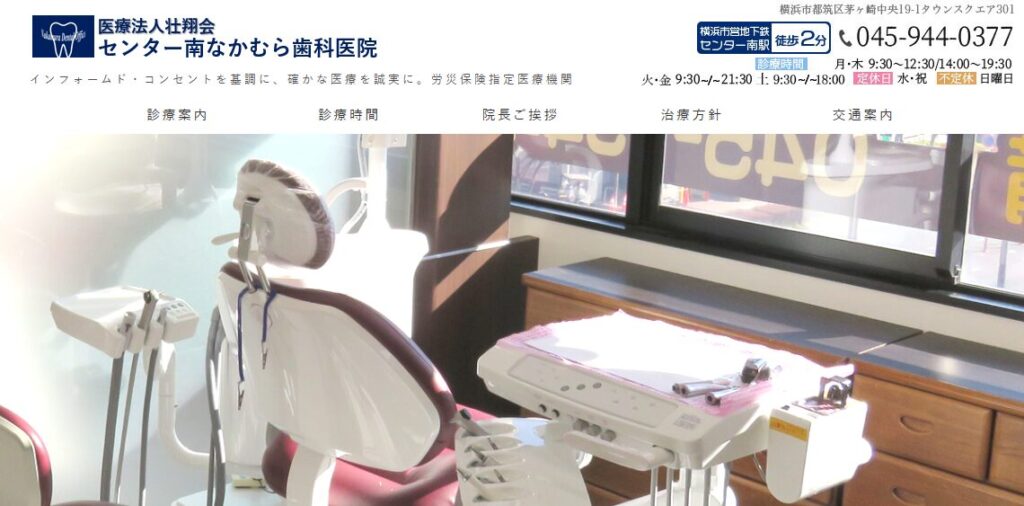 | 横浜都筑デンタルクリニック | 9:30~17:00 | 月、火、祝日 | センター南駅より徒歩10分 |