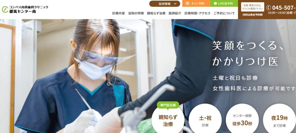 | コンパス内科歯科クリニック都筑センター南 | 日本口腔外科学会の認定医による「親知らず専門外来」で技術面での評価が高い |