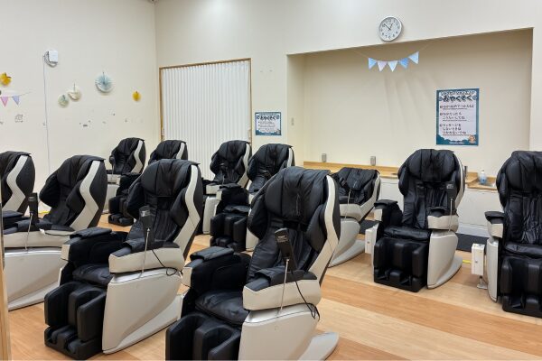施設内には大人が無料で利用できる高級マッサージチェアがズラリと並んでいます!