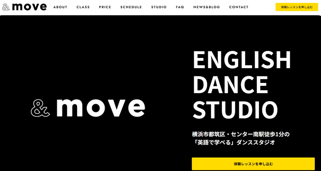 &moveは、センター南駅5番出口から徒歩1分の好立地にある、「英語で学べる」ダンススクールとして差別化を図っています。