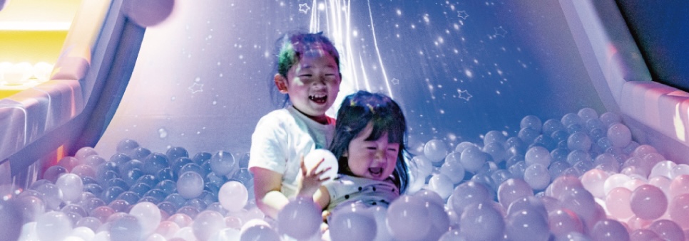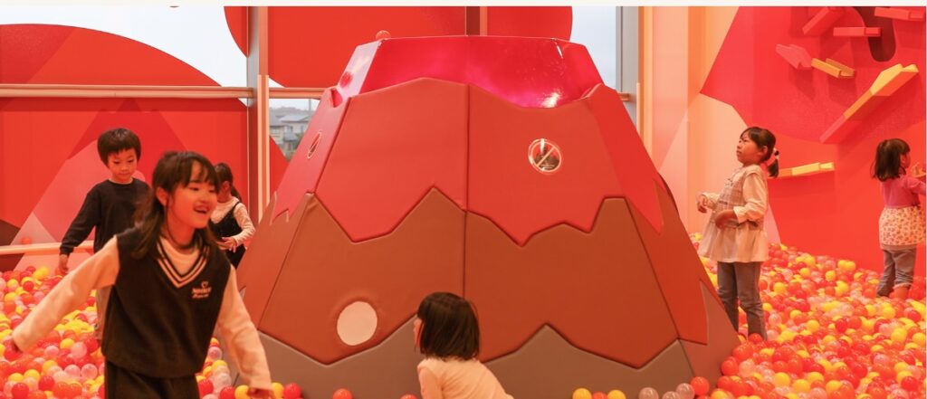 氷山滑り台や火山のボールプール、宇宙を舞台にした最新の「宇宙エリア」では、立体映像と“宇宙に近い香り”を体験できます。